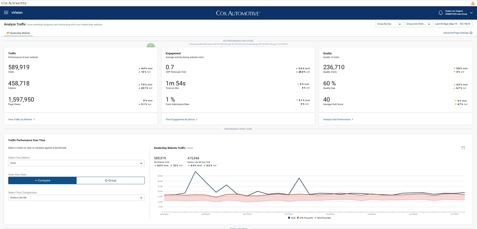 To understand your digital performance—and track how you stack up against your competition—you need more than basic digital data. That’s why we’ve engineered our intuitive reporting system to deliver a comprehensive review of your entire digital presence. Intuitive dashboards track both the quantity and quality of the traffic coming to your site and format this information into easy-to-read reports that inform your digital strategy. From advertising metrics to SEO and managed services campaign details, your Dealer.com strategists can help you apply these insights to guide your individual digital strategy, and give you a competitive edge.